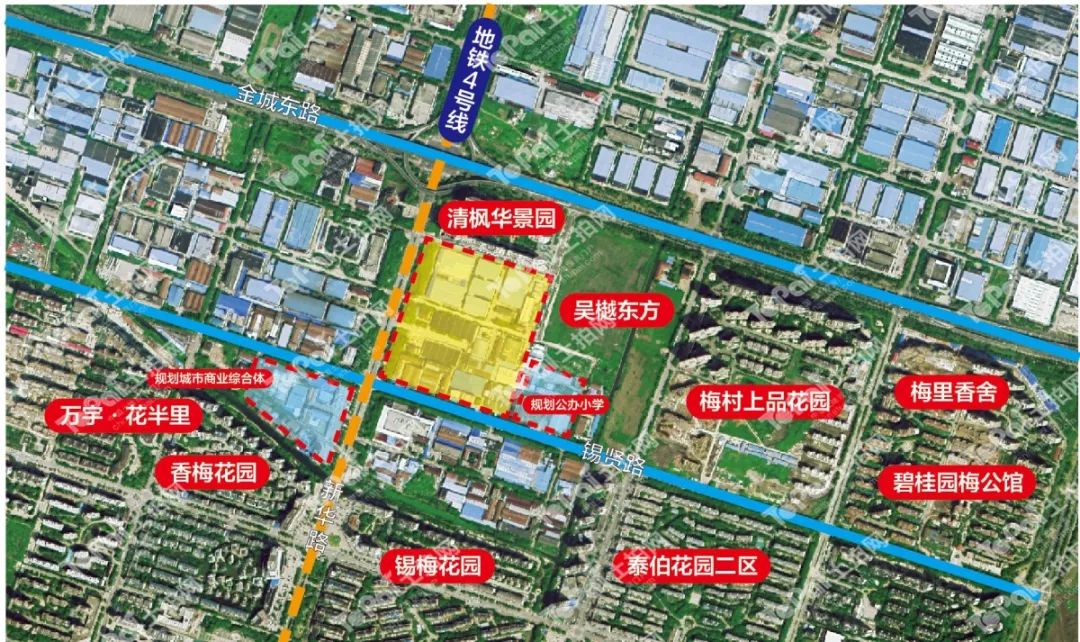 地块占地面积约230亩,规划为商住用地且位于地铁4号线沿线。紧邻地块的有新华路、锡贤路、金城路等主干道,驾车出行快捷方便;该地块被高科技企业聚集,拥有基数庞大的消费人群,而目前地块周边新房市场几乎为少有,商业缺乏;值得一提的是,地块北侧规划30-50亩小型城市商业综合体,预计明年启动,同时该区域为梅村街道“二改三”的核心改造区,待地块开发建设后将进一步弥补该片区商业、住宅项目的不足。