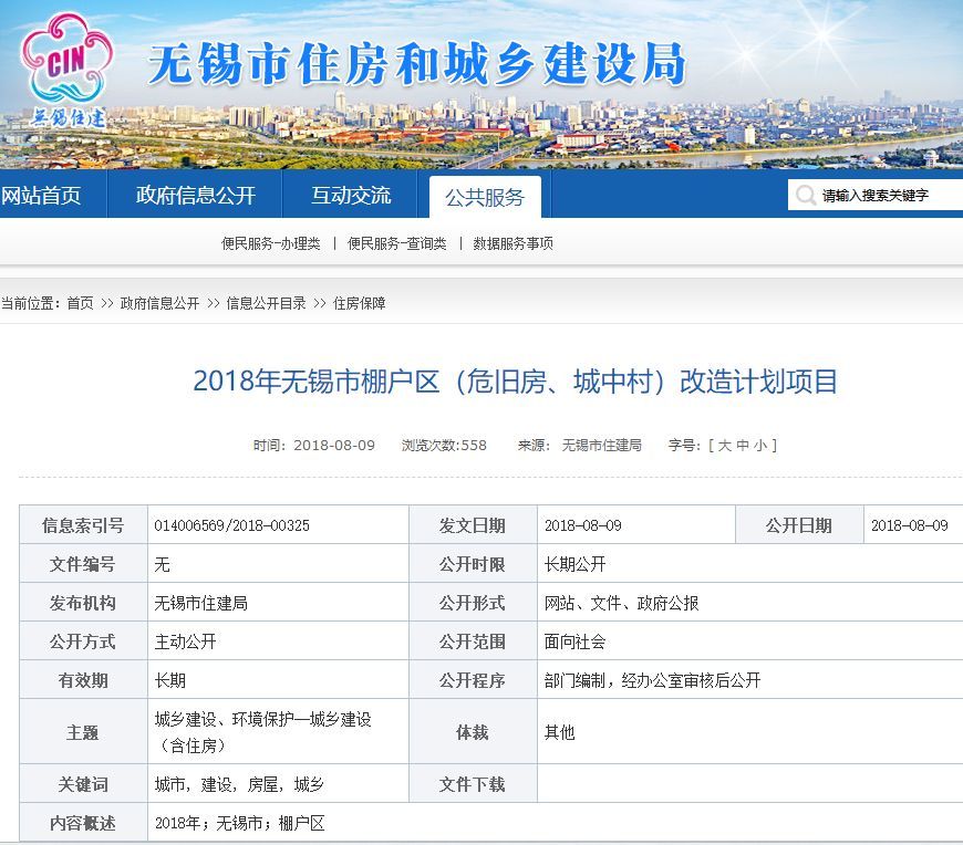 “2018年无锡市棚户区(危旧房、城中村)改造计划项目”