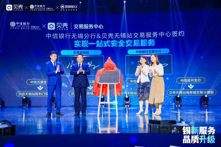 贝壳倾情打造无锡市房地产行业多方参与平台,进一步优化房地产交易体验,降低交易风险,全面构建安心保障服务,推动无锡市房产服务品质升级。发布会上,银企代表中信银行与贝壳交易服务中心联动打造“一站式”安全便捷房产交易场所。招商蛇口无锡公司与贝壳无锡新房强联合推出无忧换房,推动无锡市房产服务品质升级。