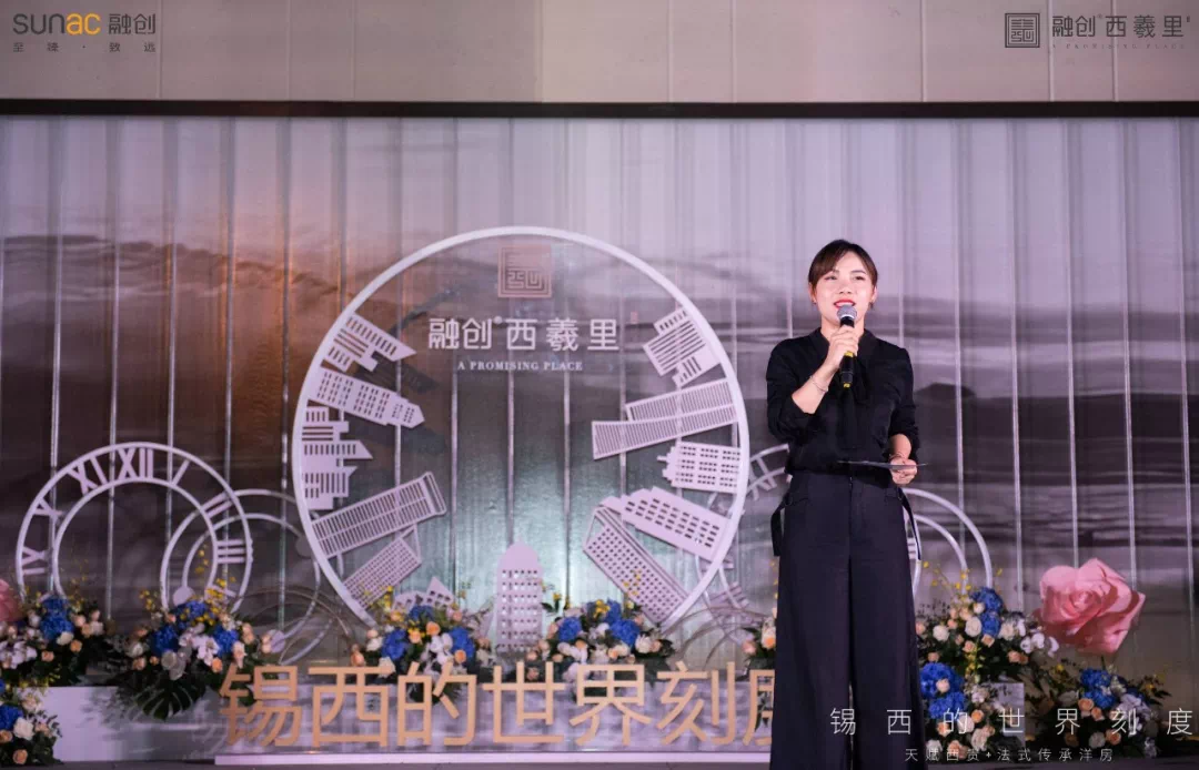 融创·西羲里项目营销总——陆莎莎女士为大家细致阐述了产品的初心,西羲里不负所望,经典复刻的法式传承洋房,严苛遵照法式对景原则,五重立体园林铺陈,四季成长乐园相伴,无一不体现匠造锡西的里程作品之心。