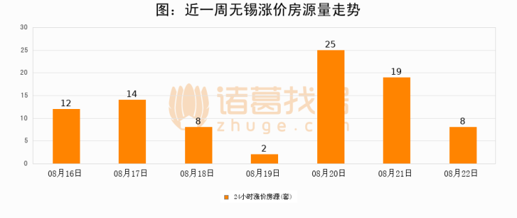 根据诸葛找房数据显示,无锡24小时涨价房源量为8套,较08月21日减少11套,环比下降57.9%。与此同时,涨价房源占比小幅回落,对于购房者来说是一个入市窗口期,购房者可抓住时机入市。