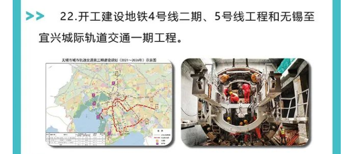年内开工建设地铁4号线二期、5号线工程和无锡至宜兴城际轨道交通一期工程……