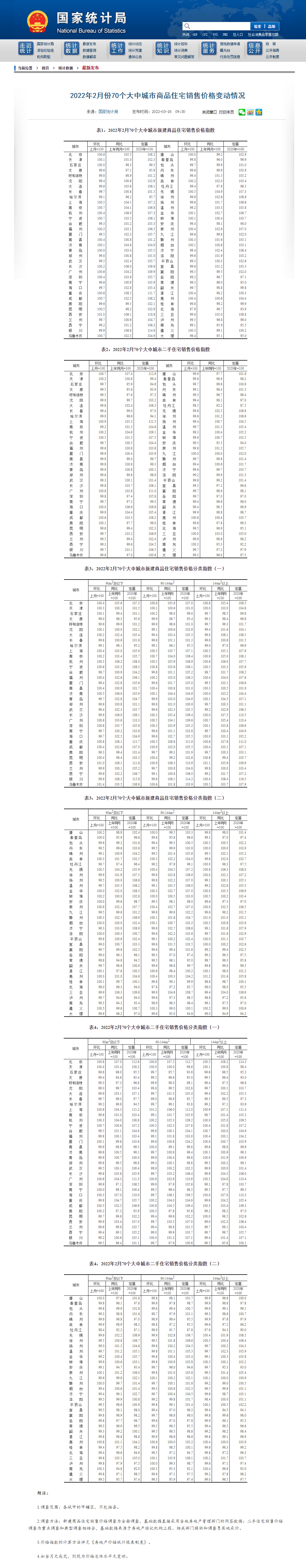 央视网消息:据国家统计局3月16日发布2022年2月份70个大中城市商品住宅销售价格变动情况。