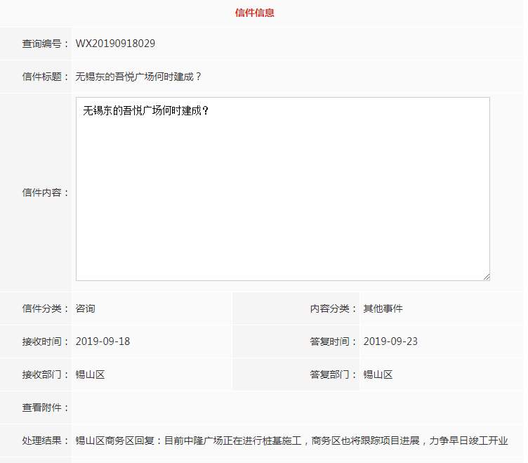 @锡山区商务区回复:目前中隆广场正在进行桩基施工,商务区也将跟踪项目进展,力争早日竣工开业。