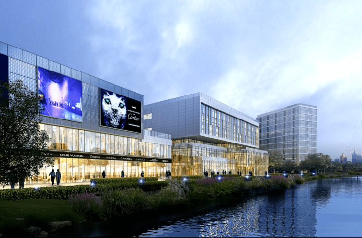 从效果图来看,整个建筑充满特色,盒子式的建筑,有当下的潮流度,连廊、屋檐等设计,则彰显了江南风情。