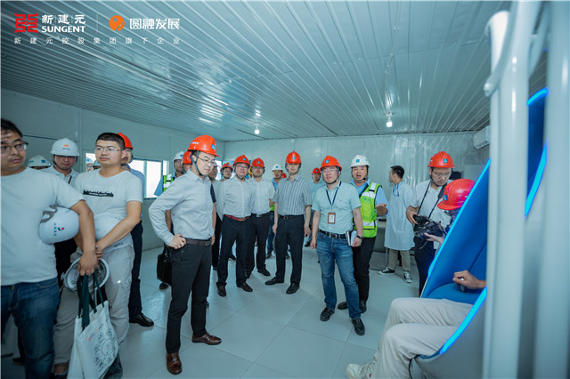 下午4:00,座谈会议结束后,参会人员前往圆融广场标准化示范工地参观学习,圆融广场项目位于无锡市梁溪区锡澄路与江海路交叉口东南侧,总建筑面积约30万㎡,占地面积7.6万㎡。由6栋34层高层住宅、2栋33层高层住宅、4栋11层小高层住宅、1栋9层小高层住宅及商业配套、地下车库组成。本次参观为二期项目地块。