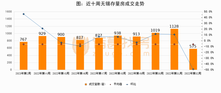 存量房方面,第02周无锡存量房成交575套,较上周减少553套,环比下降49%。从近十周成交走势来看,周均成交套数为886套,本周低于平均水平35.1%。