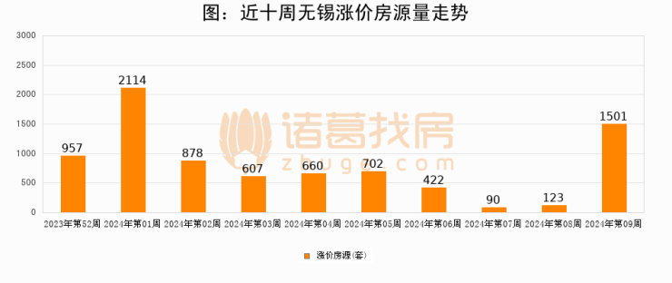 三、本周涨价房源1501套,较上周上涨1120.3%
