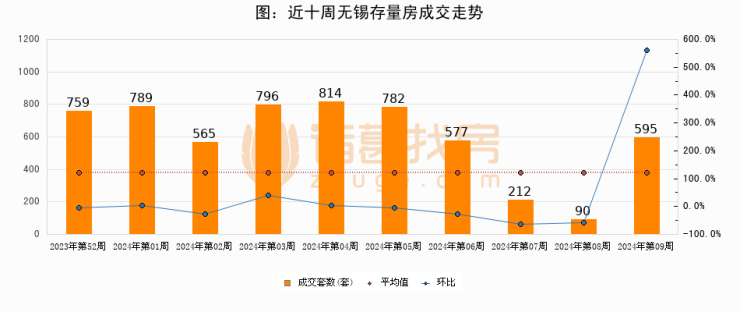 存量房方面,第08周无锡存量房成交595套,较上周增加505套,环比上涨561.1%。从近十周成交走势来看,周均成交套数为597套,本周低于平均水平0.3%。