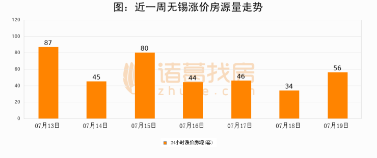 根据诸葛找房数据显示,无锡24小时涨价房源量为56套,较07月18日增加22套,环比上涨64.7%。与此同时,涨价房源占比小幅扩大,业主信心有所提升。