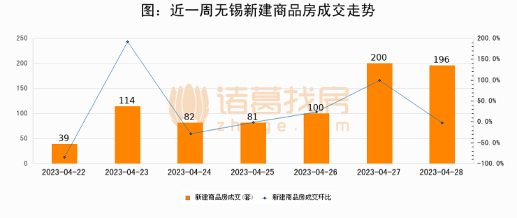【无锡成交日报】04月28日新房成交196套、二手房222套;涨价房源65套