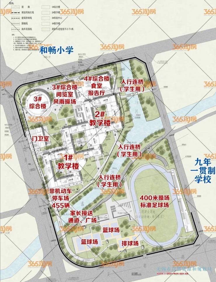 但学校东侧原来规划为九年一贯制学校,动态更新后改成了小学(24+24班),与此次的规划的总平面图有差别,但反正总归是将建一所学校。
