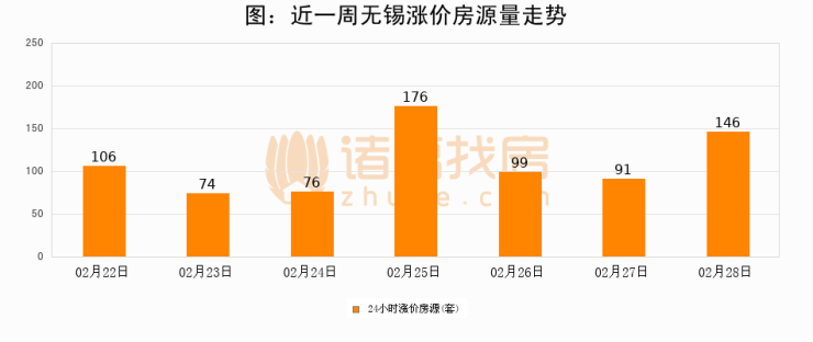 根据诸葛找房数据显示,无锡24小时涨价房源量为146套,较02月27日增加55套,环比上涨60.4%。与此同时,涨价房源占比小幅扩大,业主信心有所提升。