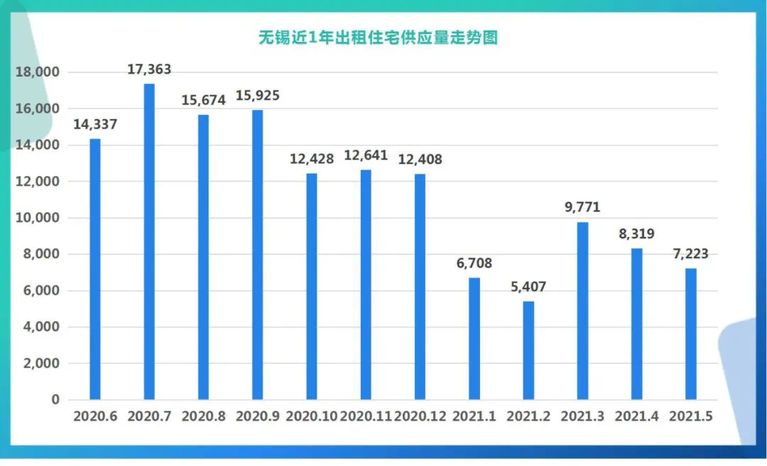 5月,无锡出租住宅新增7223套,环比上月下降约13.2%,同时这也是无锡出租住宅供应量连续第三个月下降,相较于去年无锡月均出租住宅供应量普遍1.2万套以上的成绩,还是有一定的差距。