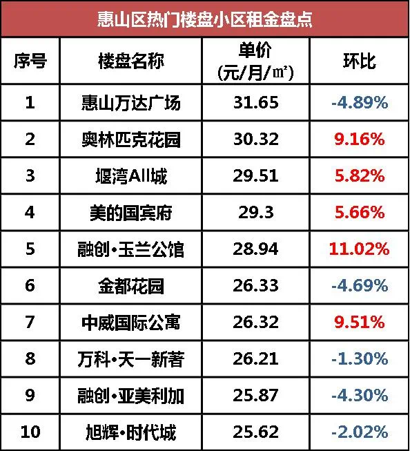 惠山区5月平均租房单价为24.1元/㎡/月,是无锡市区各行政区中均价较低的,环比上涨0.96%。其中惠山万达广场是惠山区平均租金单价较高的小区,达到了31.65元/㎡/月;排名前十的小区中,涨幅较高的是融创玉兰公馆,涨幅达到了11.02%。