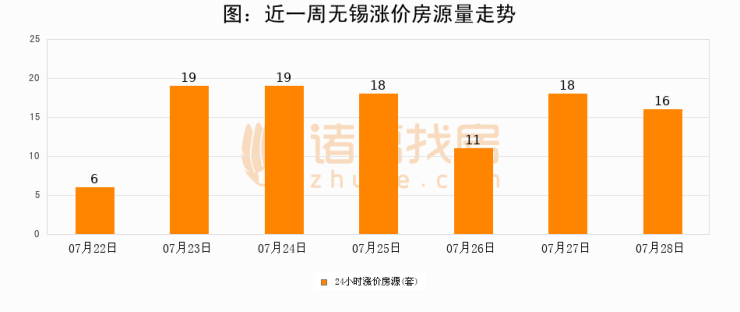 根据诸葛找房数据显示,无锡24小时涨价房源量为16套,较07月27日减少2套,环比下降11.1%。与此同时,涨价房源占比小幅回落,对于购房者来说是一个入市窗口期,购房者可抓住时机入市。