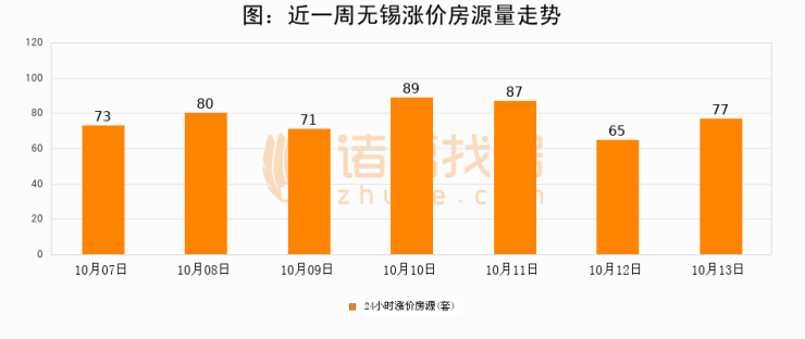根据诸葛找房数据显示,无锡24小时涨价房源量为77套,较10月12日增加12套,环比上涨18.5%。与此同时,涨价房源占比小幅扩大,业主信心有所提升。