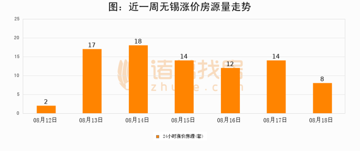 根据诸葛找房数据显示,无锡24小时涨价房源量为8套,较08月17日减少6套,环比下降42.9%。与此同时,涨价房源占比小幅回落,对于购房者来说是一个入市窗口期,购房者可抓住时机入市。
