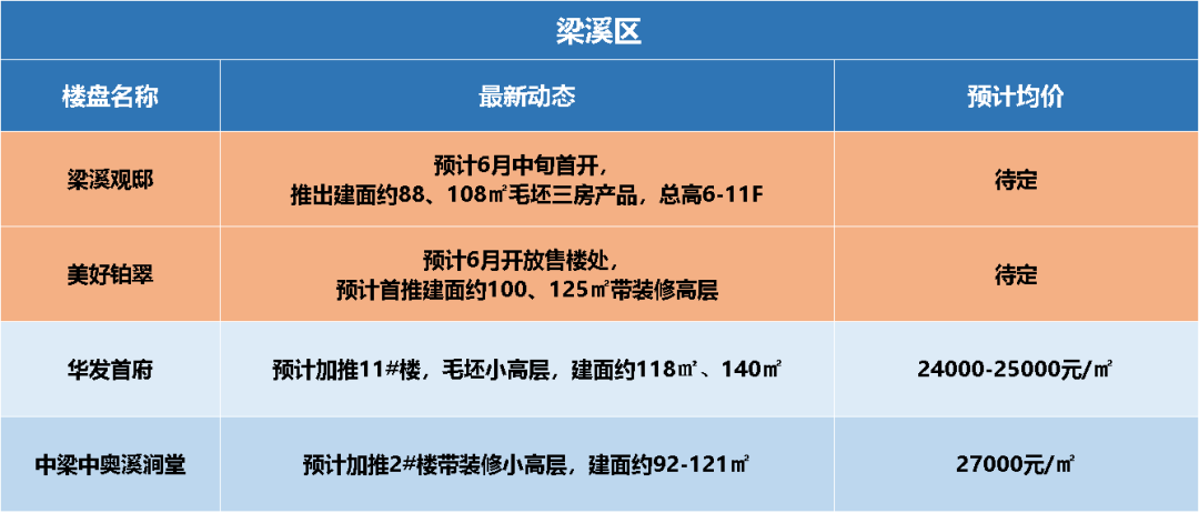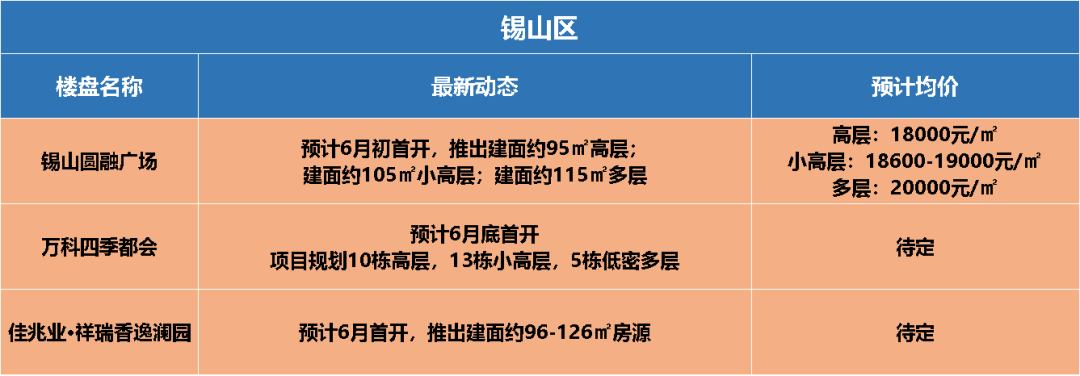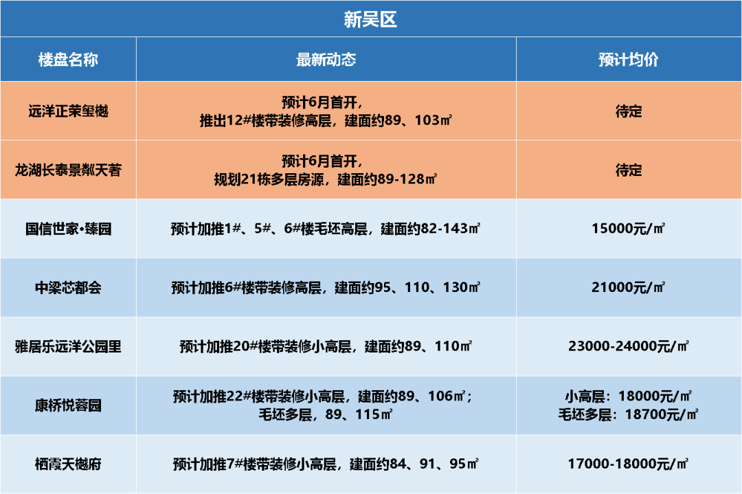 新吴区6月份预计有2个纯新项目开盘,5个项目加推。