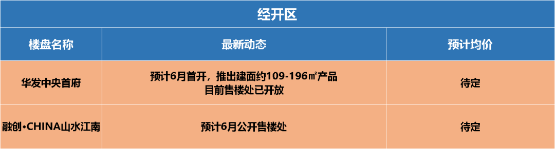 经开区6月份预计有1个纯新项目开盘,1个纯新项目开放售楼处。