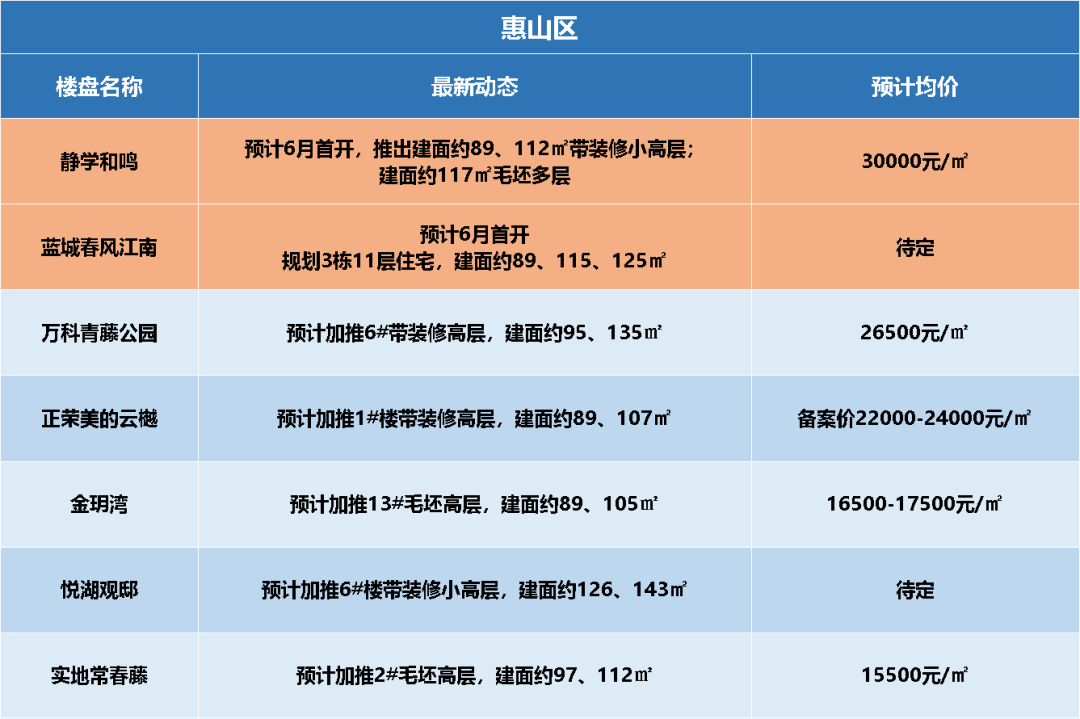 惠山区6月份预计有2个纯新项目开盘,5个项目加推。