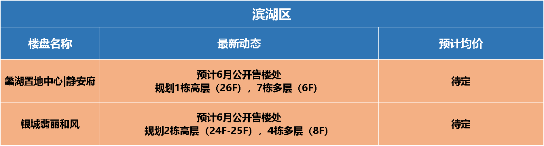 滨湖区6月份预计有2个纯新项目开放售楼处。