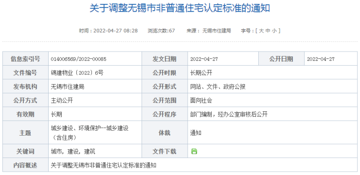 为进一步优化前期物业服务项目收费中有关非普通住宅的认定,根据《市政府办公室关于无锡市高品质住区建设的实施意见》《无锡市物业服务收费管理实施办法》,结合我市实际情况,将调整后的非普通住宅的认定标准通知如下: