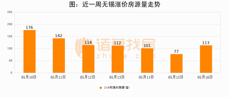根据诸葛找房数据显示,无锡24小时涨价房源量为113套,较05月15日增加36套,环比上涨46.8%。与此同时,涨价房源占比小幅扩大,业主信心有所提升。