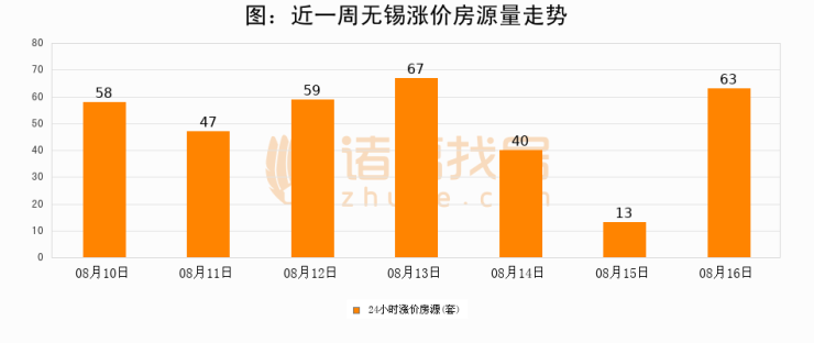 根据诸葛找房数据显示,无锡24小时涨价房源量为63套,较08月15日增加50套,环比上涨384.6%。与此同时,涨价房源占比小幅扩大,业主信心有所提升。