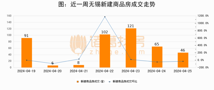 【无锡成交日报】04月25日新房成交46套、二手房191套;涨价房源118套