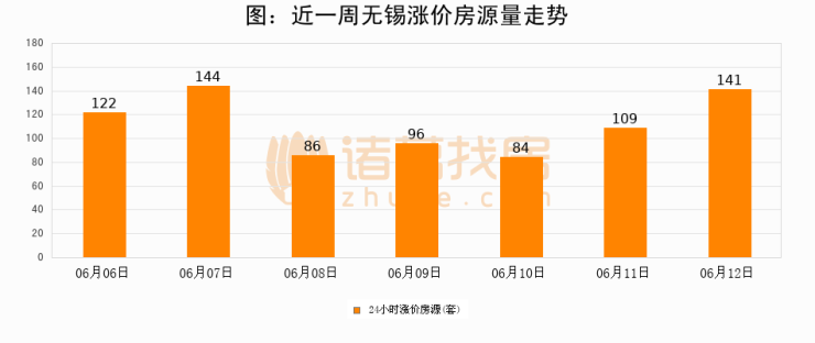 根据诸葛找房数据显示,无锡24小时涨价房源量为141套,较06月11日增加32套,环比上涨29.4%。与此同时,涨价房源占比小幅扩大,业主信心有所提升。