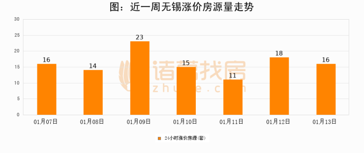 根据诸葛找房数据显示,无锡24小时涨价房源量为16套,较01月12日减少2套,环比下降11.1%。与此同时,涨价房源占比小幅回落,对于购房者来说是一个入市窗口期,购房者可抓住时机入市。