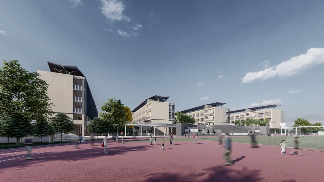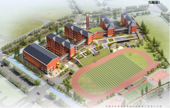 该项目位于梁溪区南长街与旺庄西路交叉口西北侧,与总校同处清名桥历史文化街区,规划占地面积约21700平方米,总建筑面积约18414平方米,项目主要建设3栋教学楼、1栋行政综合楼、1栋风雨操场楼和地下室,地上各层通过连廊相互联通。