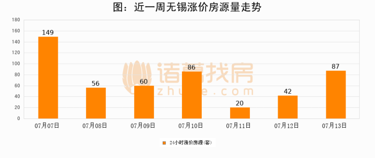 根据诸葛找房数据显示,无锡24小时涨价房源量为87套,较07月12日增加45套,环比上涨107.1%。与此同时,涨价房源占比小幅扩大,业主信心有所提升。