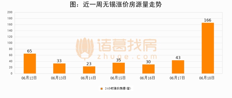 根据诸葛找房数据显示,无锡24小时涨价房源量为166套,较06月17日增加123套,环比上涨286%。与此同时,涨价房源占比小幅扩大,业主信心有所提升。