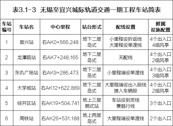 6个站点分别是:宜兴站——龙潭路站——东氿广场站——大学城站——经开区站——周铁站。