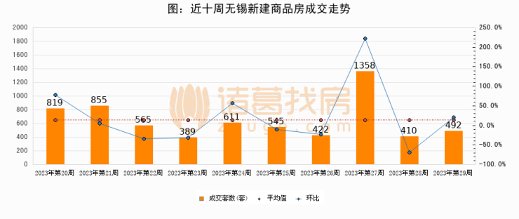 【无锡成交周报】第29周新房成交492套,二手房735套,涨价房源404套