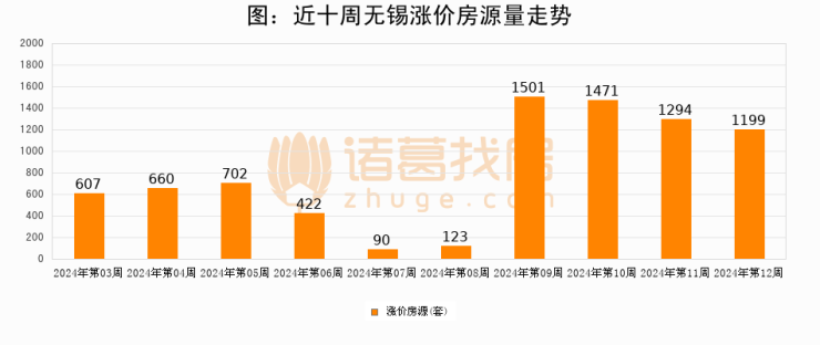 从调价房源来看,第11周无锡涨价房源1199套,较上周下降7.3%。与此同时,11周涨价房源占比提升2.33个百分点,业主信心持续恢复。