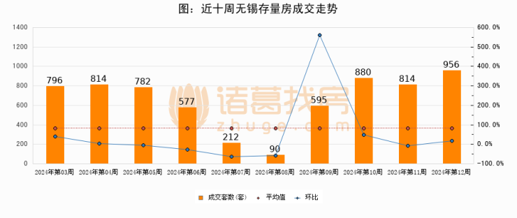 存量房方面,第11周无锡存量房成交956套,较上周增加142套,环比上涨17.4%。从近十周成交走势来看,周均成交套数为651套,本周高于平均水平46.9%。