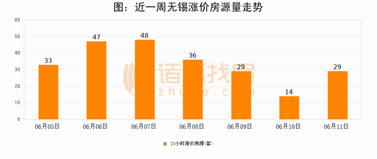 根据诸葛找房数据显示,无锡24小时涨价房源量为29套,较06月10日增加15套,环比上涨107.1%。与此同时,涨价房源占比小幅扩大,业主信心有所提升。