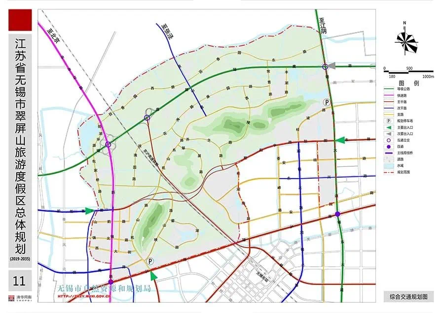 翠屏山旅游度假区规划范围东至锡东大道,南至锡沪路-胶西路-胶阳中路-锦安路-安国路沿线,西至鸭荡圩,北至双泾河,规划面积约为16平方公里。