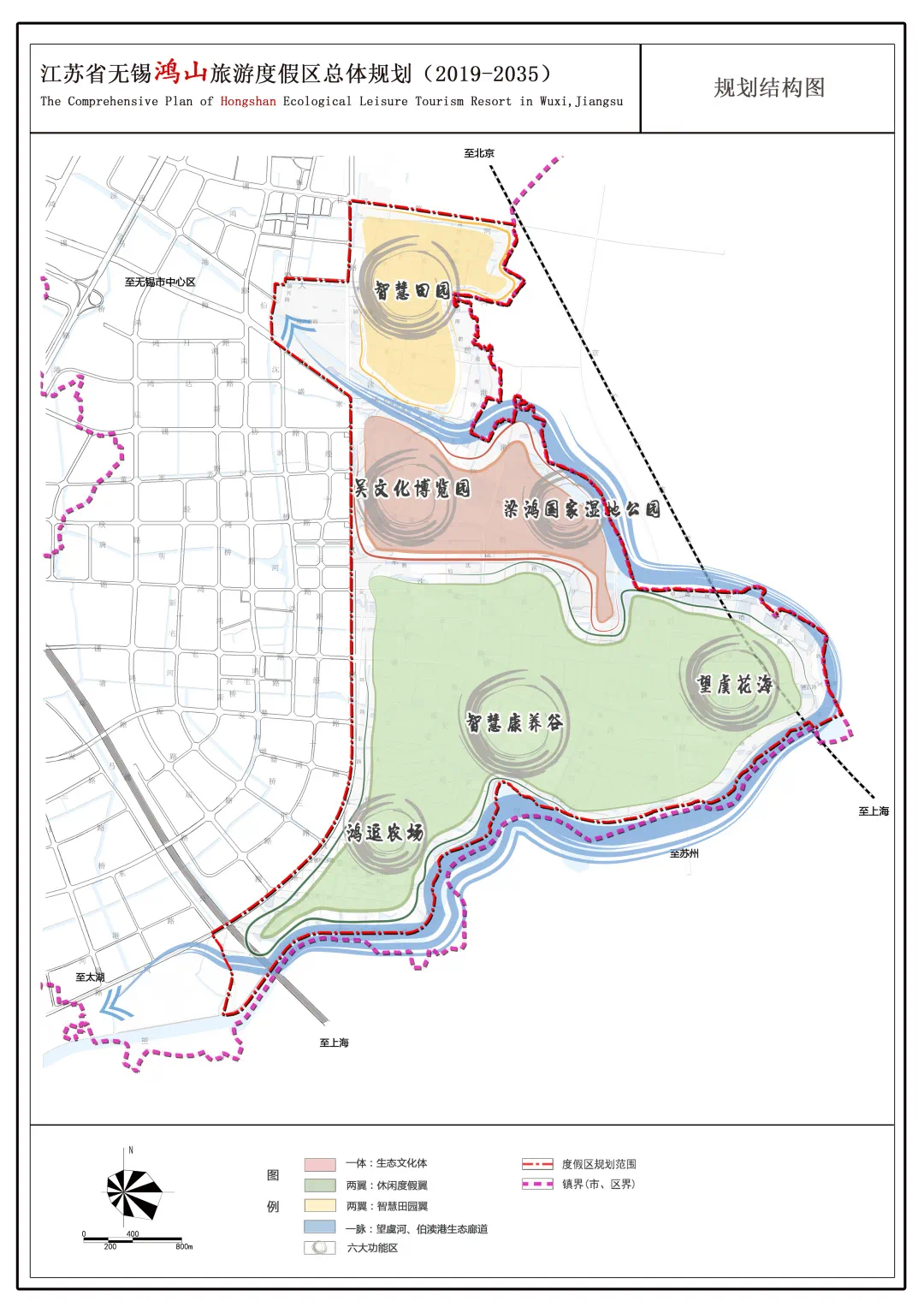 以生态与文化为主题的生态文化核“两翼”分别为北部的智慧田园翼和南部的休闲度假翼。