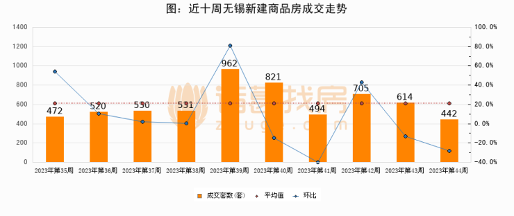 【无锡成交周报】第44周新房成交442套,二手房905套,涨价房源469套