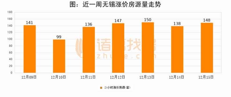 根据诸葛找房数据显示,无锡24小时涨价房源量为148套,较12月14日增加10套,环比上涨7.2%。与此同时,涨价房源占比小幅扩大,业主信心有所提升。