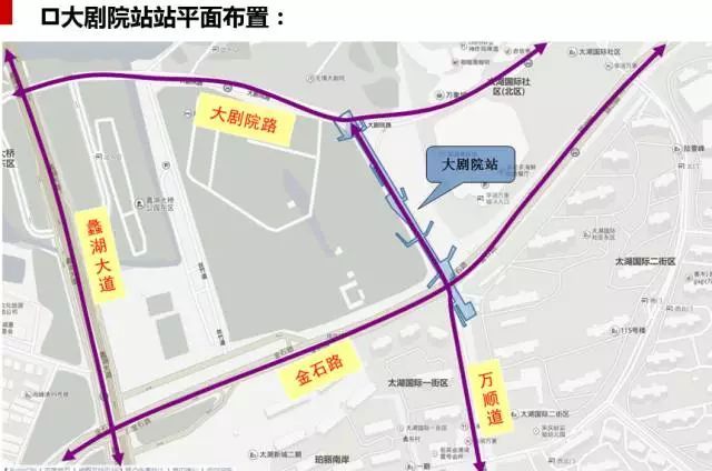 车站设计为地下二层11米岛式车站,站后设置双停车线。车站主体跨大剧院路布置,配线区跨金石路沿万顺道布置。