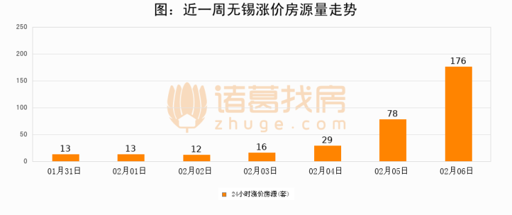 根据诸葛找房数据显示,无锡24小时涨价房源量为176套,较02月05日增加98套,环比上涨125.6%。与此同时,涨价房源占比小幅扩大,业主信心有所提升。