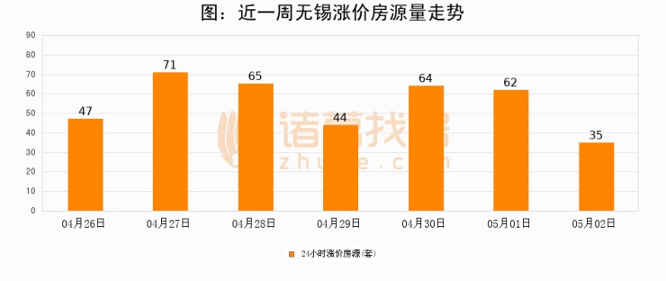 根据诸葛找房数据显示,无锡24小时涨价房源量为35套,较05月01日减少27套,环比下降43.5%。与此同时,涨价房源占比小幅回落,对于购房者来说是一个入市窗口期,购房者可抓住时机入市。