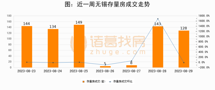 从存量房来看,2023年08月29日无锡存量房单日成交128套,比昨日减少15套,环比下降10.5%。从近一周存量房成交来看,无锡存量房日均成交套数为101套,08月29日单日成交128套,高于近一周平均水平26.7%。