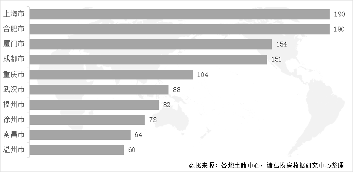 三、上海、合肥并列土地出让金榜首,5城揽金突破百亿