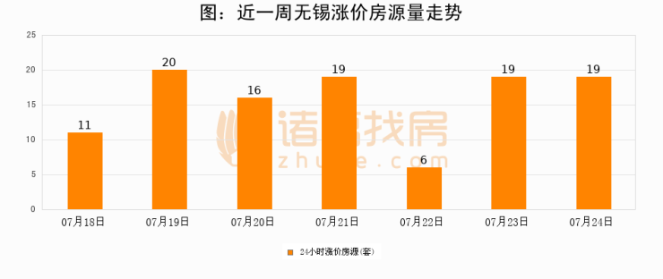 根据诸葛找房数据显示,无锡24小时涨价房源量为19套,较07月23日持平。
